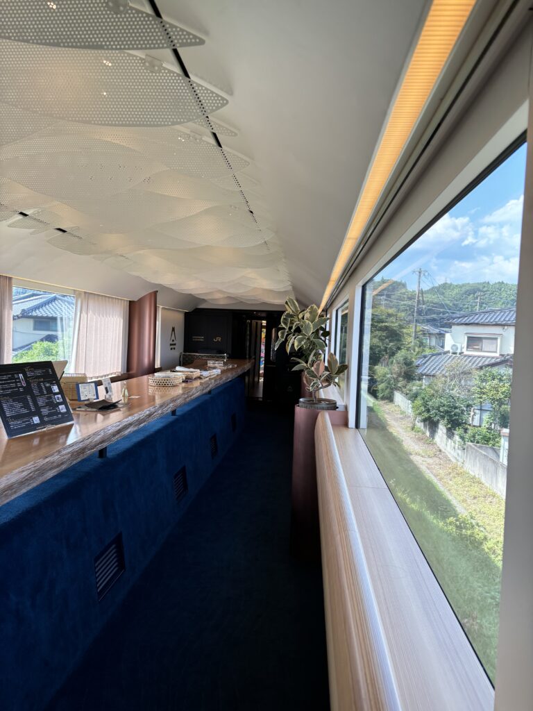 木の質感が心地よく、列車であることを忘れるような落ち着いた空間。