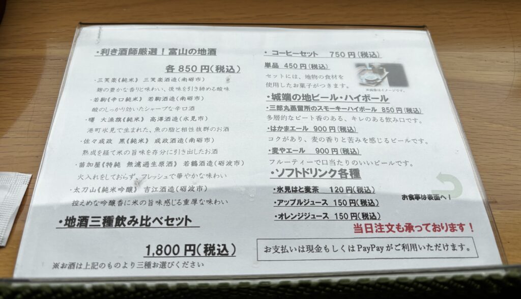 日本酒を中心に、富山の地酒を楽しめる利き酒セットも用意されています。