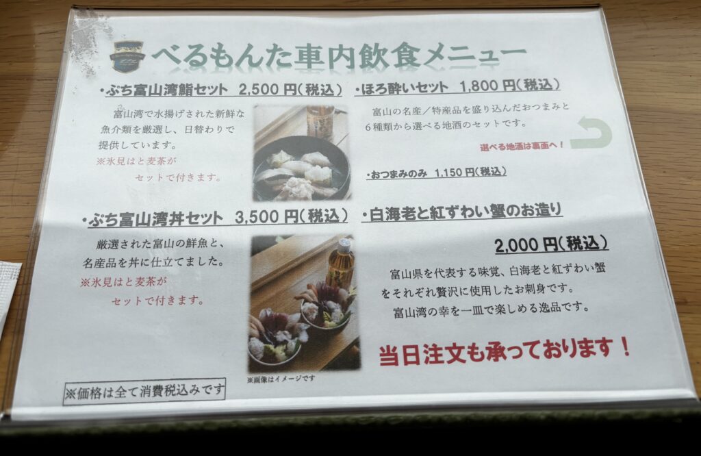 同じ富山でも、べるもんたとは異なる「レストラン列車」としての魅力があります。