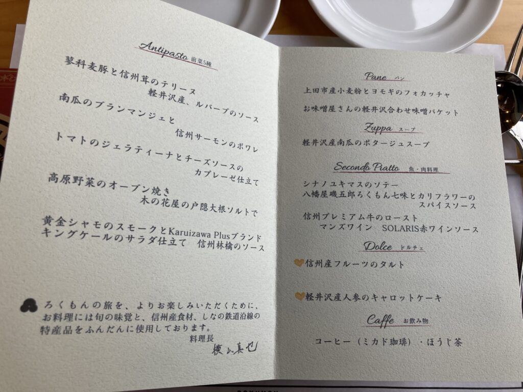 軽井沢から長野までの時間は、料理、演出、車窓が一体となった体験として設計されています。