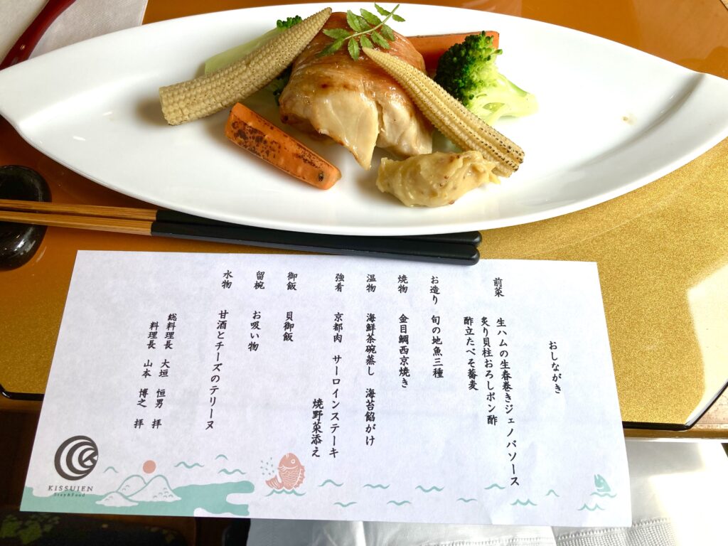 席に着くと、まずお品書きと前菜が提供されます。