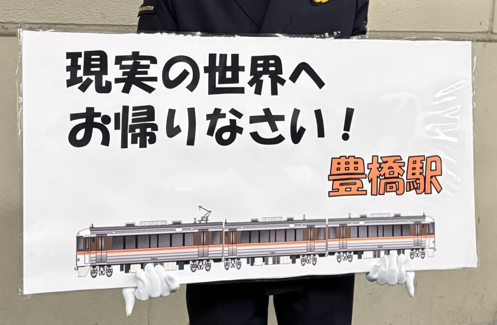 ホームで印象的だったのが、駅員さんが手にしていたパネルです。