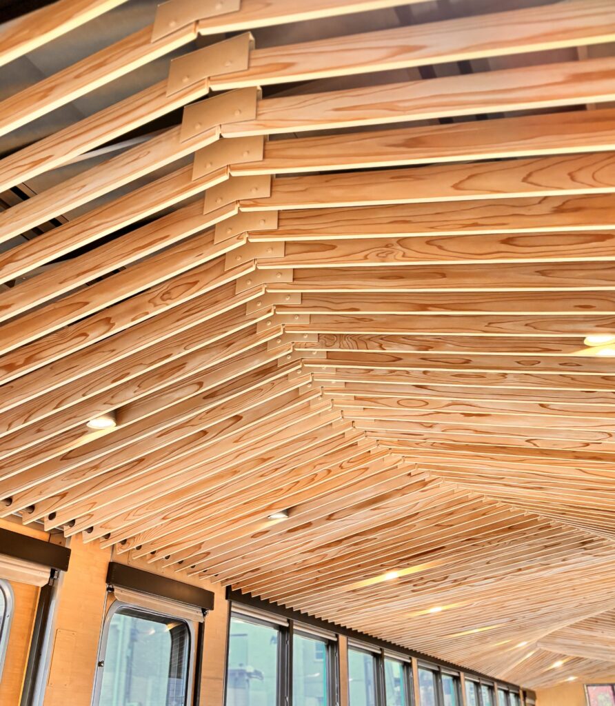一方、4号車は、より「隈研吾さんらしさ」が際立つ空間。