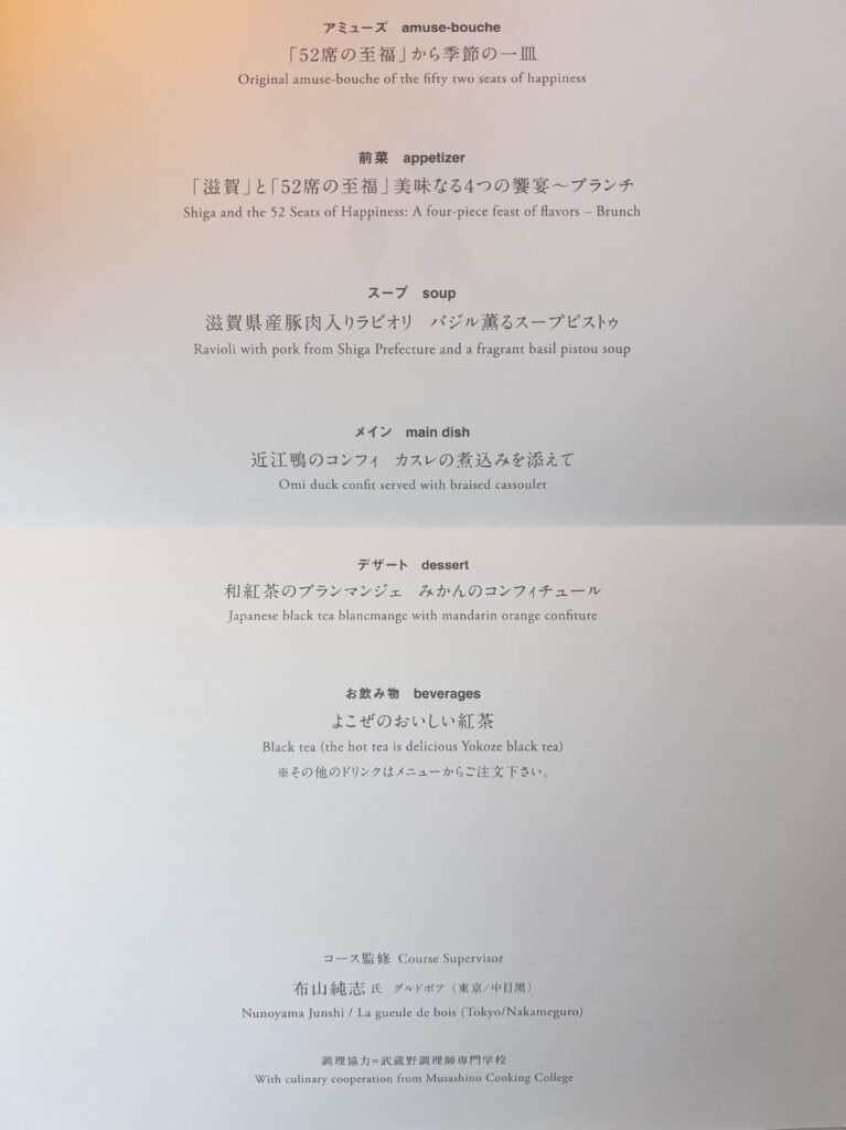 今期のメニューは、滋賀県出身の布山純志シェフ(La gueule de bois)が監修。